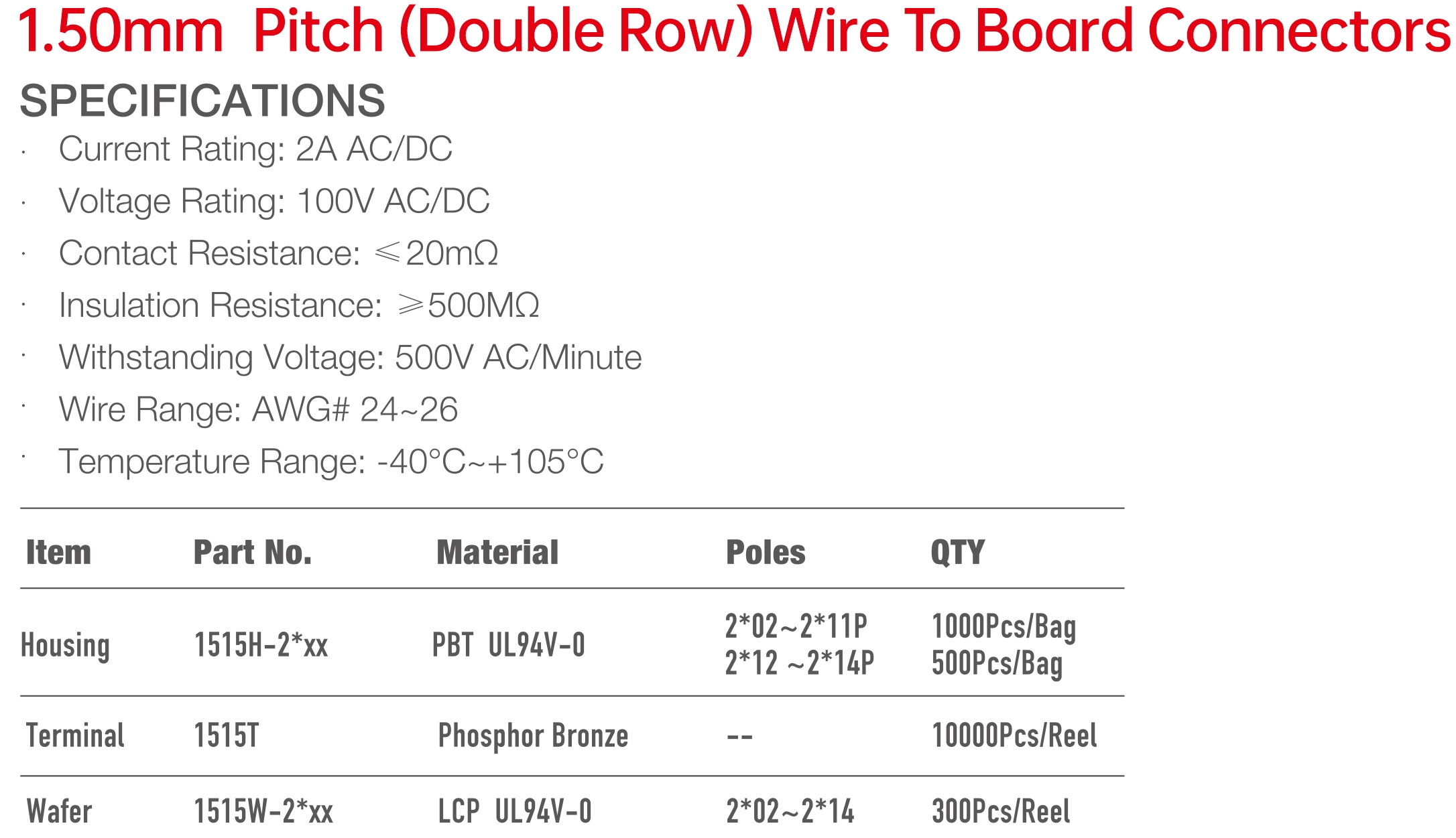 1515 Double Row Series 1.50mm Pitch (.059") 車用連接器