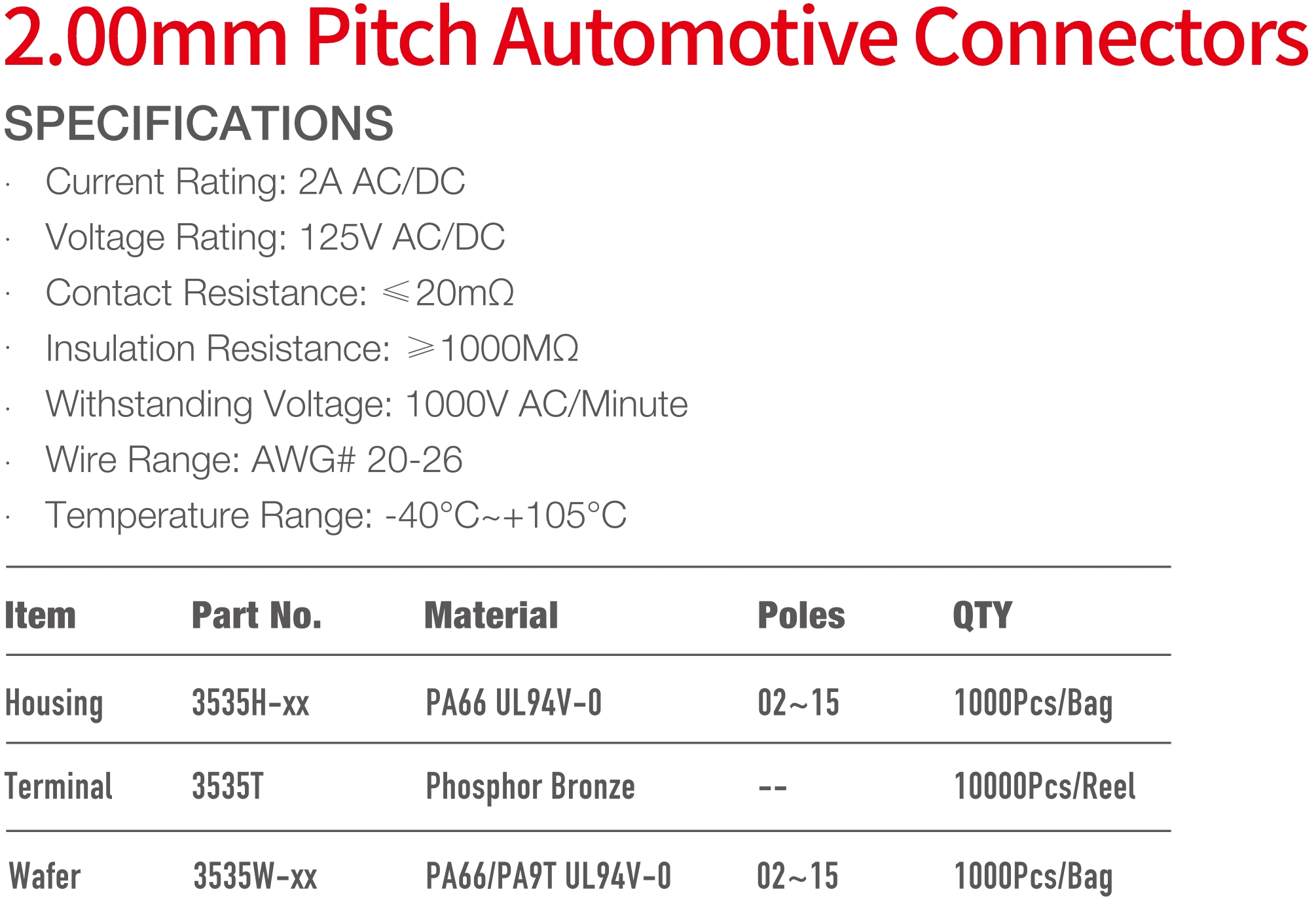 3535 Series 2.00mm Pitch (.079") 車用連接器