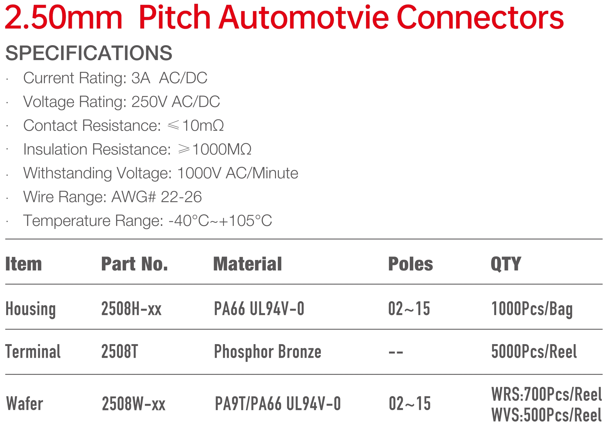 2508 Series 2.50mm Pitch (.098") 車(chē)用連接器