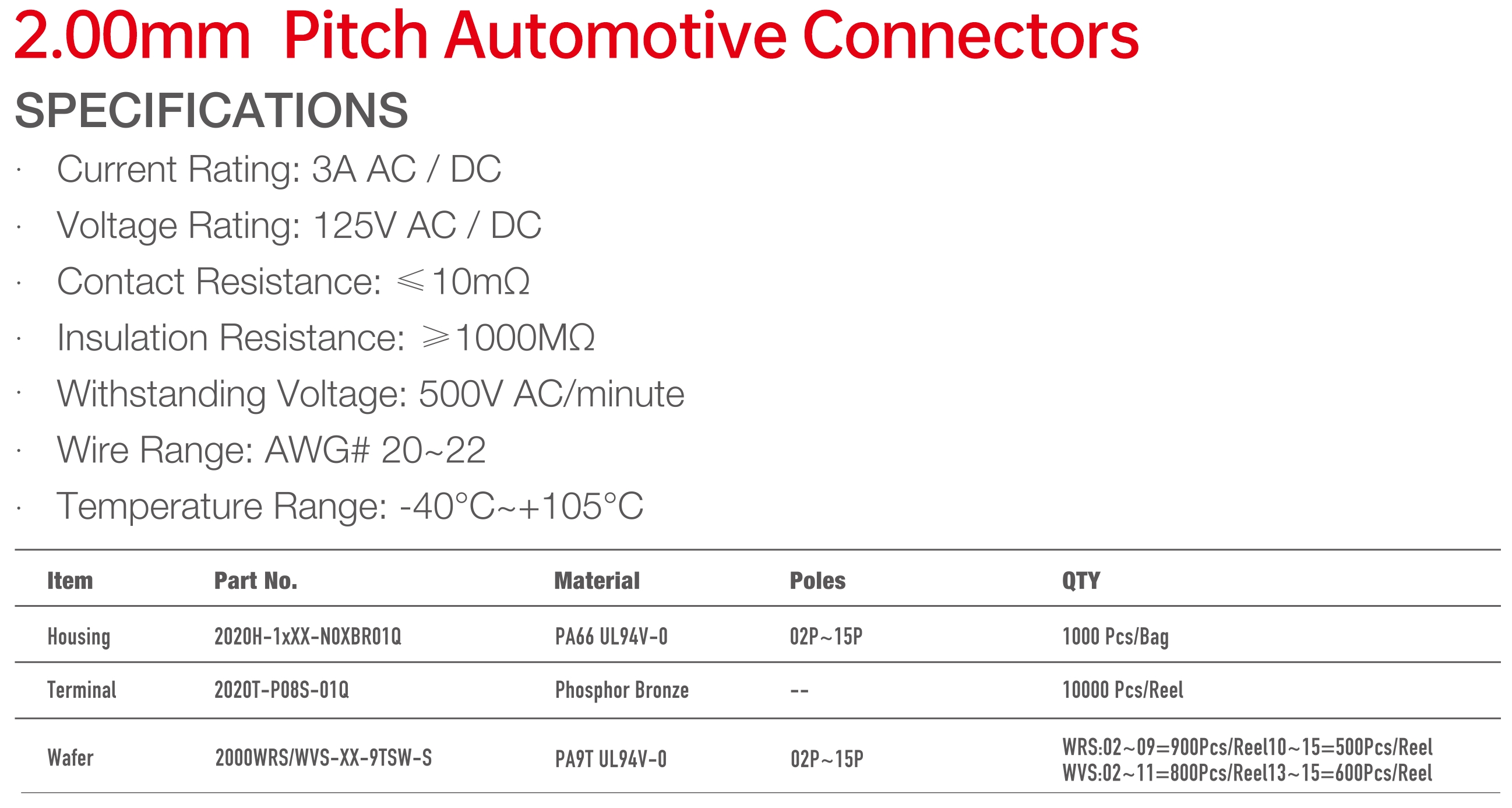 2020 Series 2.00mm Pitch (.079") 車用連接器
