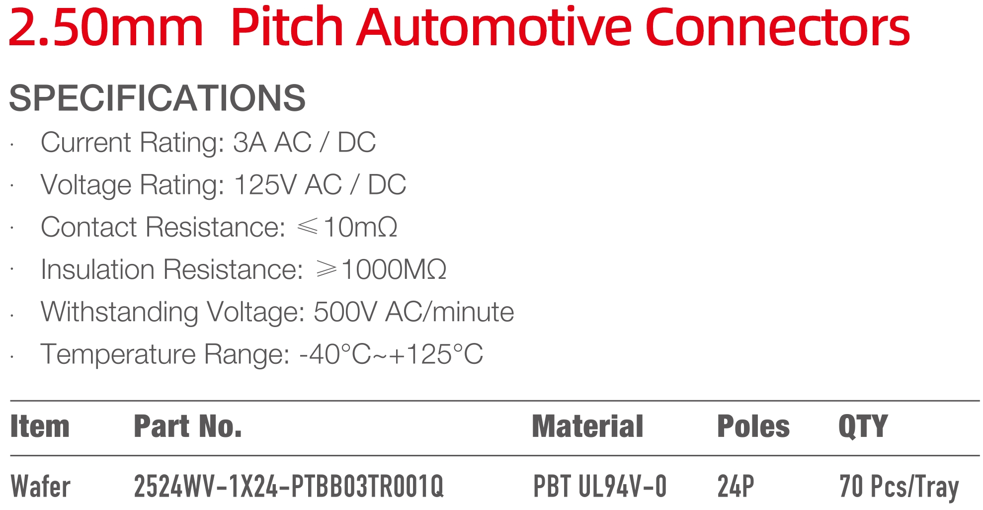 2524 Series 2.50mm Pitch (.098") 車用連接器