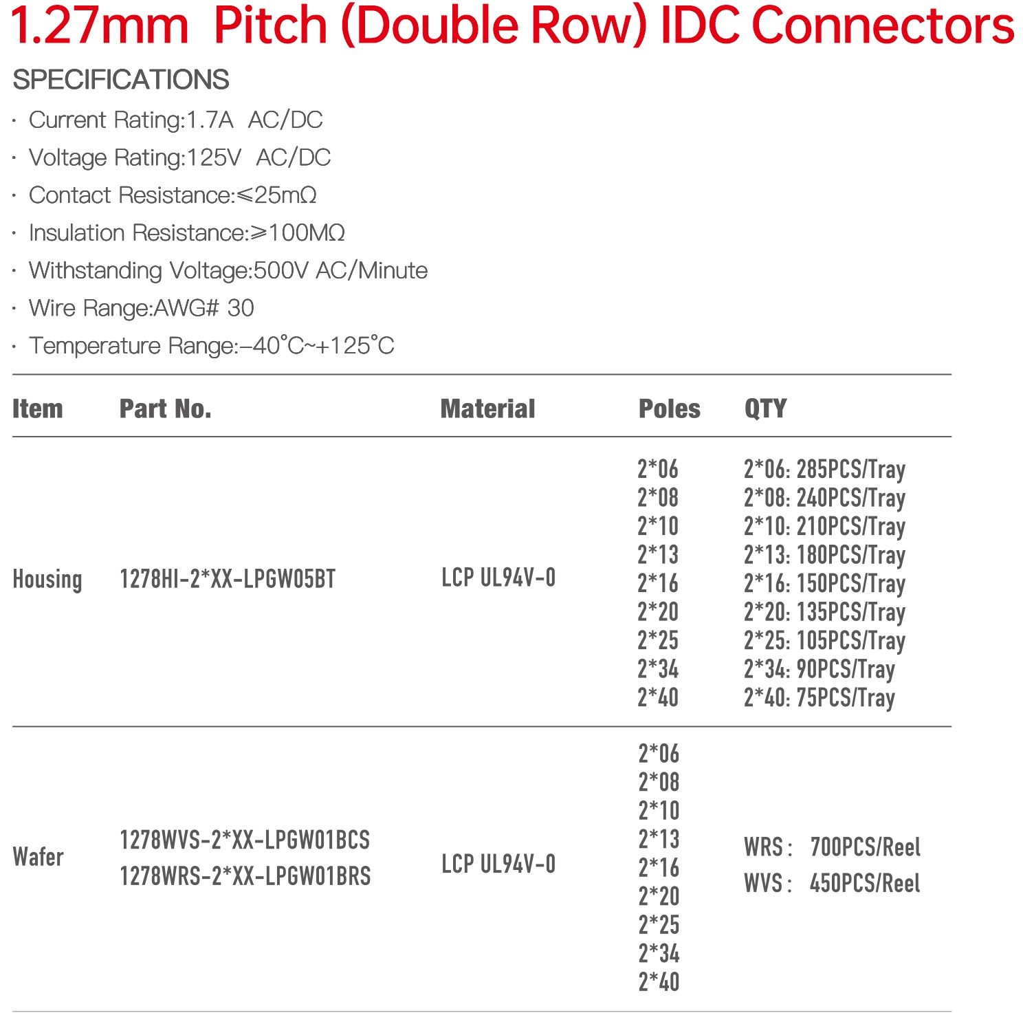 1278 Double Row Series 1.27mm Pitch(050“)刺破連接器