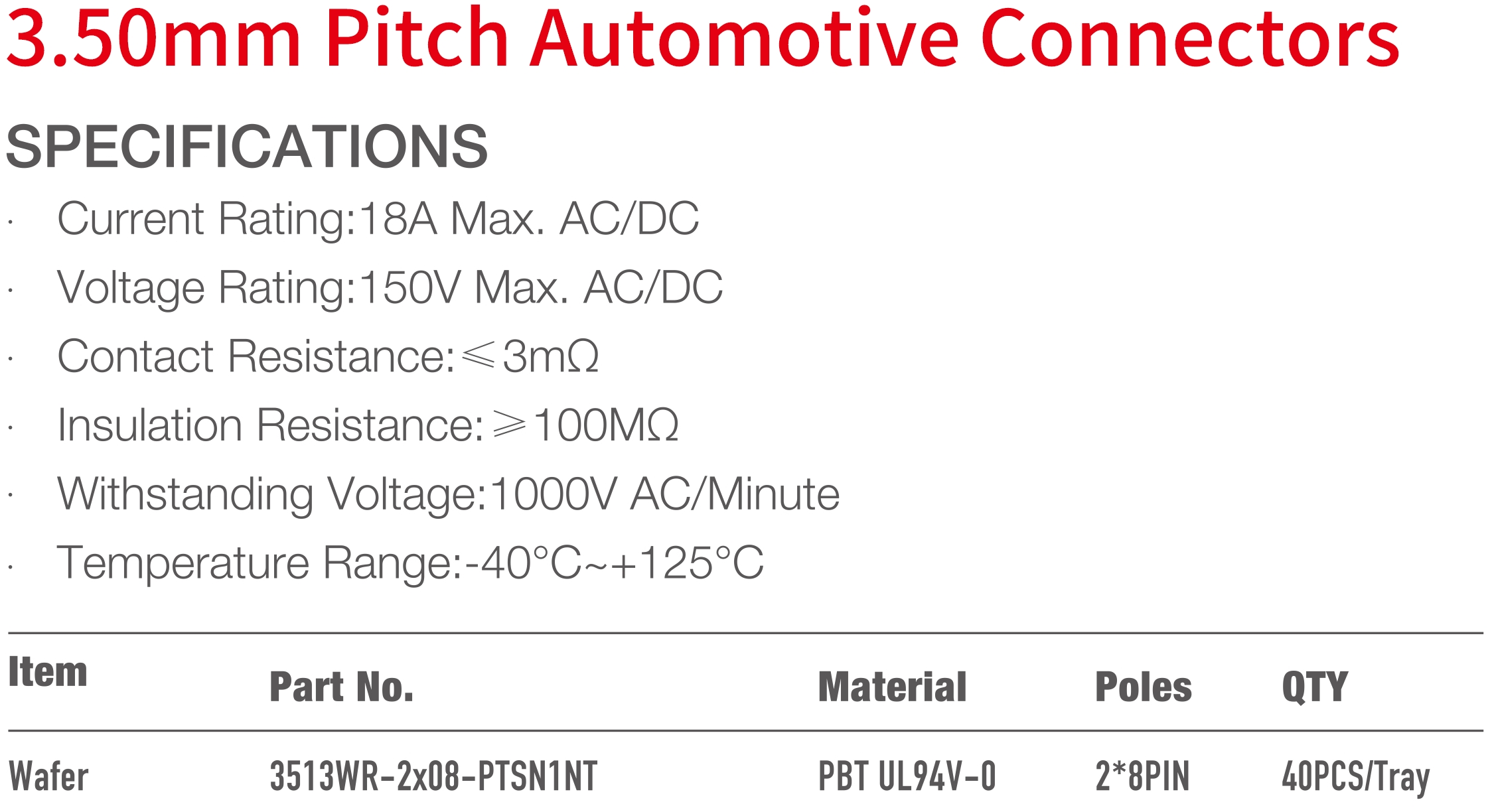 3513 Series 3.50mm Pitch (.138") 車用連接器