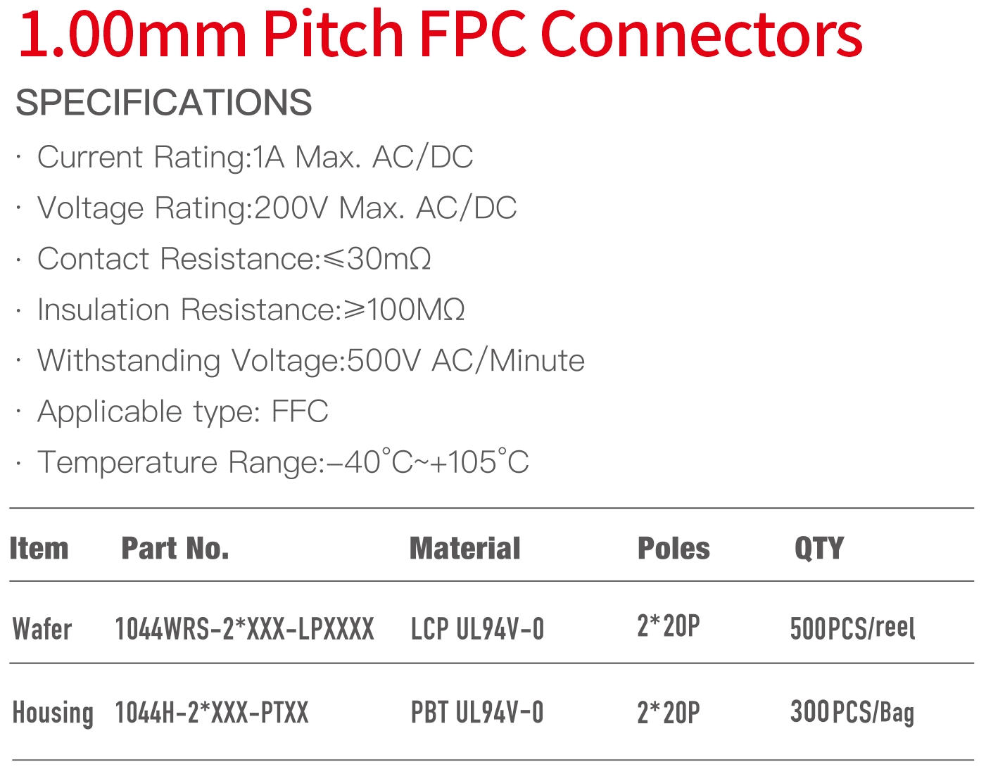 1044 Double Row Series 1.00mm Pitch (.039") FPC連接器