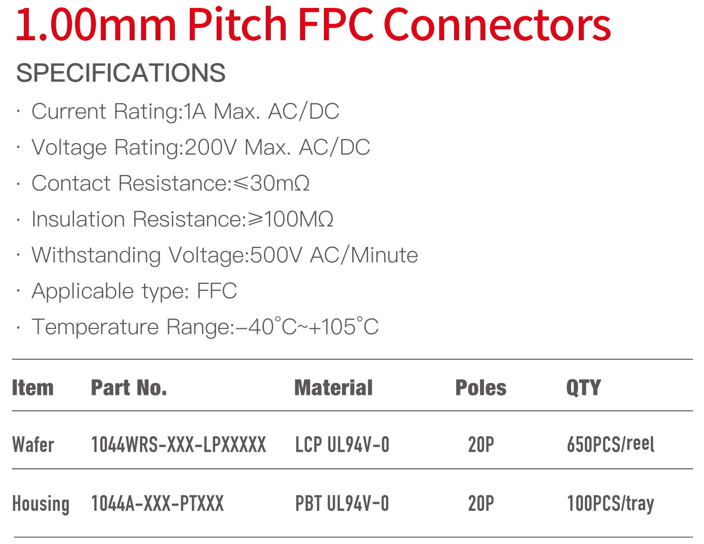 1044 Single Row Series 1.00mm Pitch (.039") FPC連接器