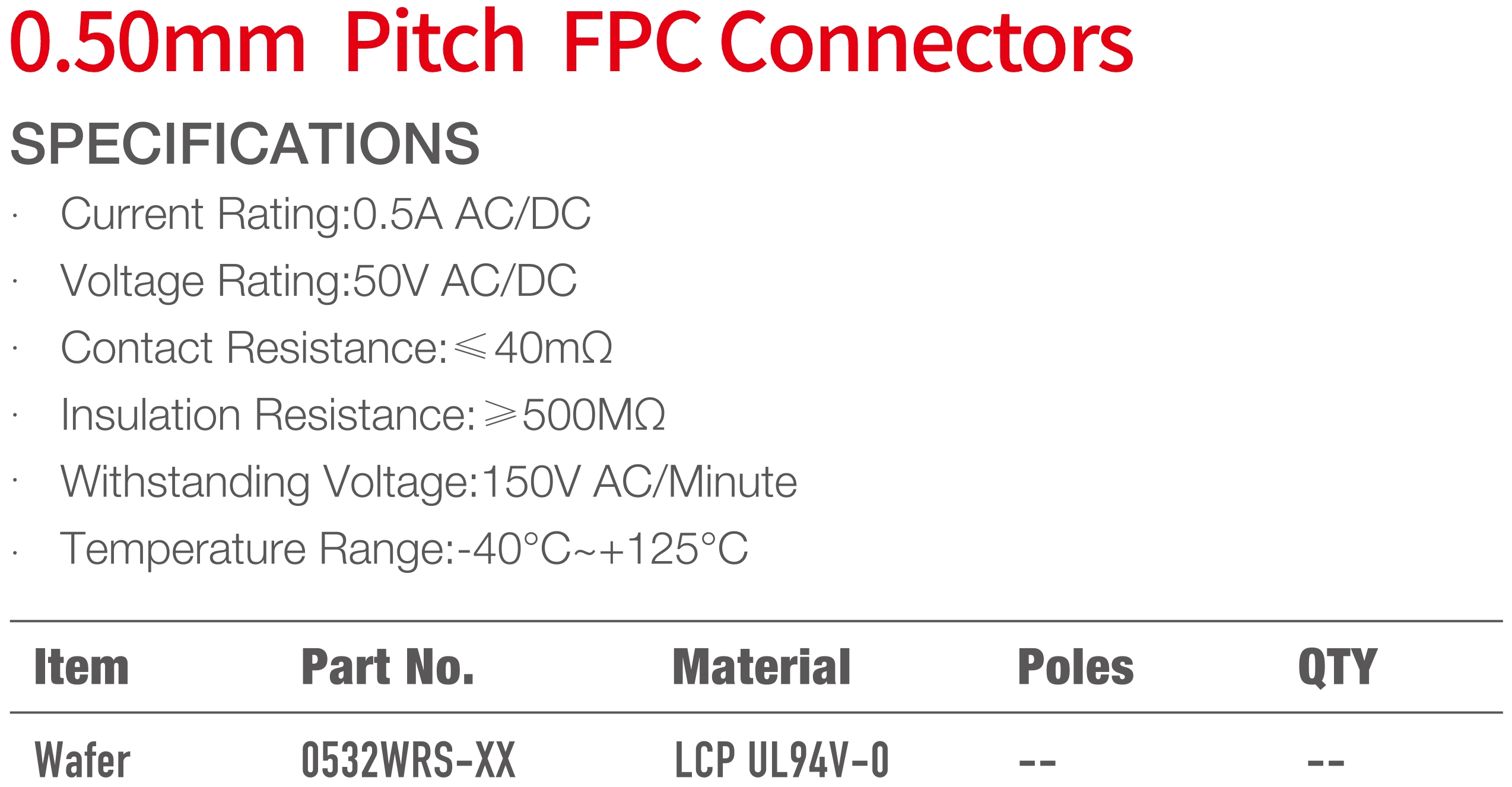 0532 Series 0.50mm Pitch (.020") FPC 連接器