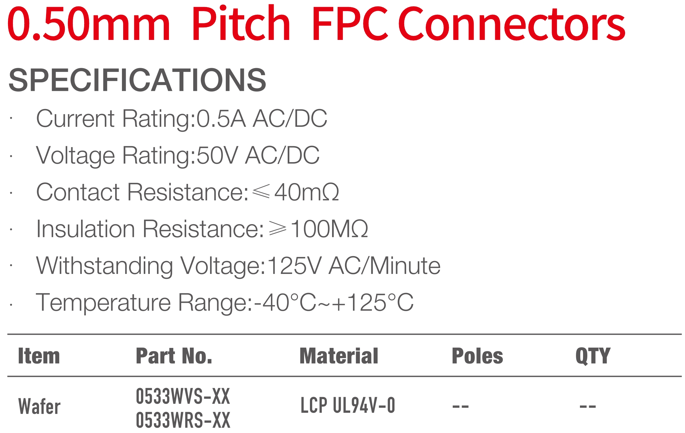 0533 Series 0.50mm Pitch (.020") FPC連接器