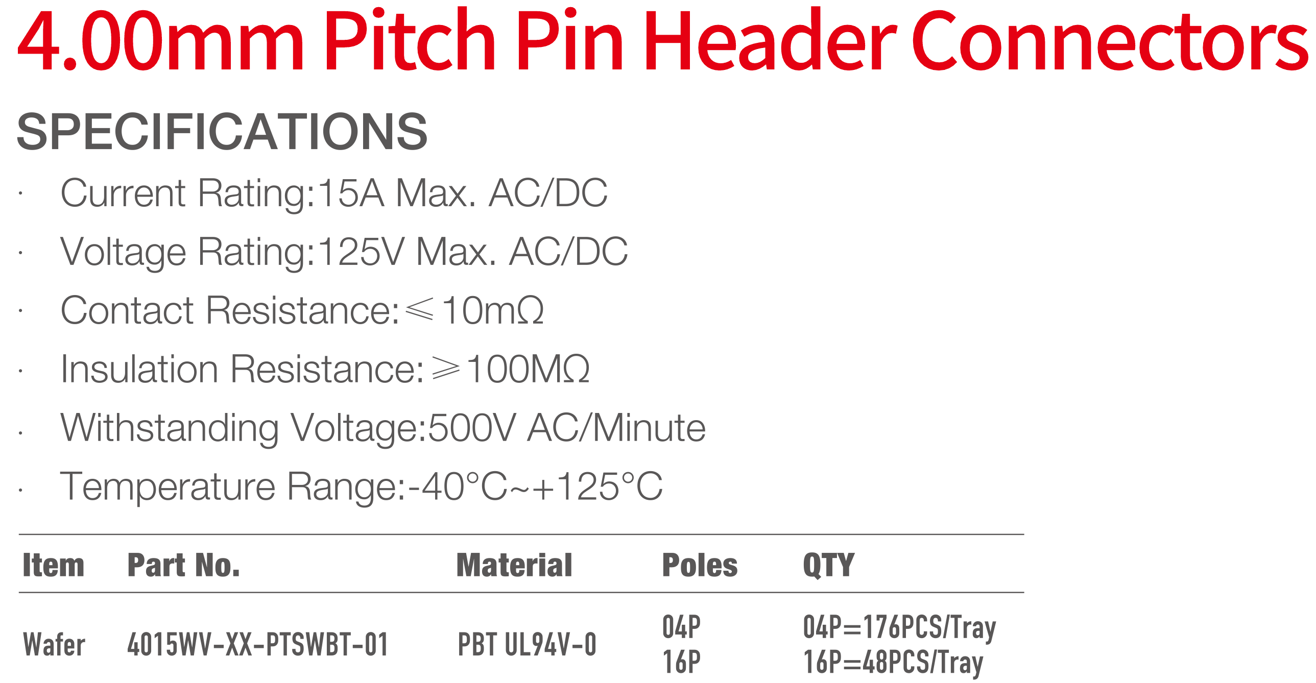 4015 Series 4.00mm Pitch (.157") 排針連接器