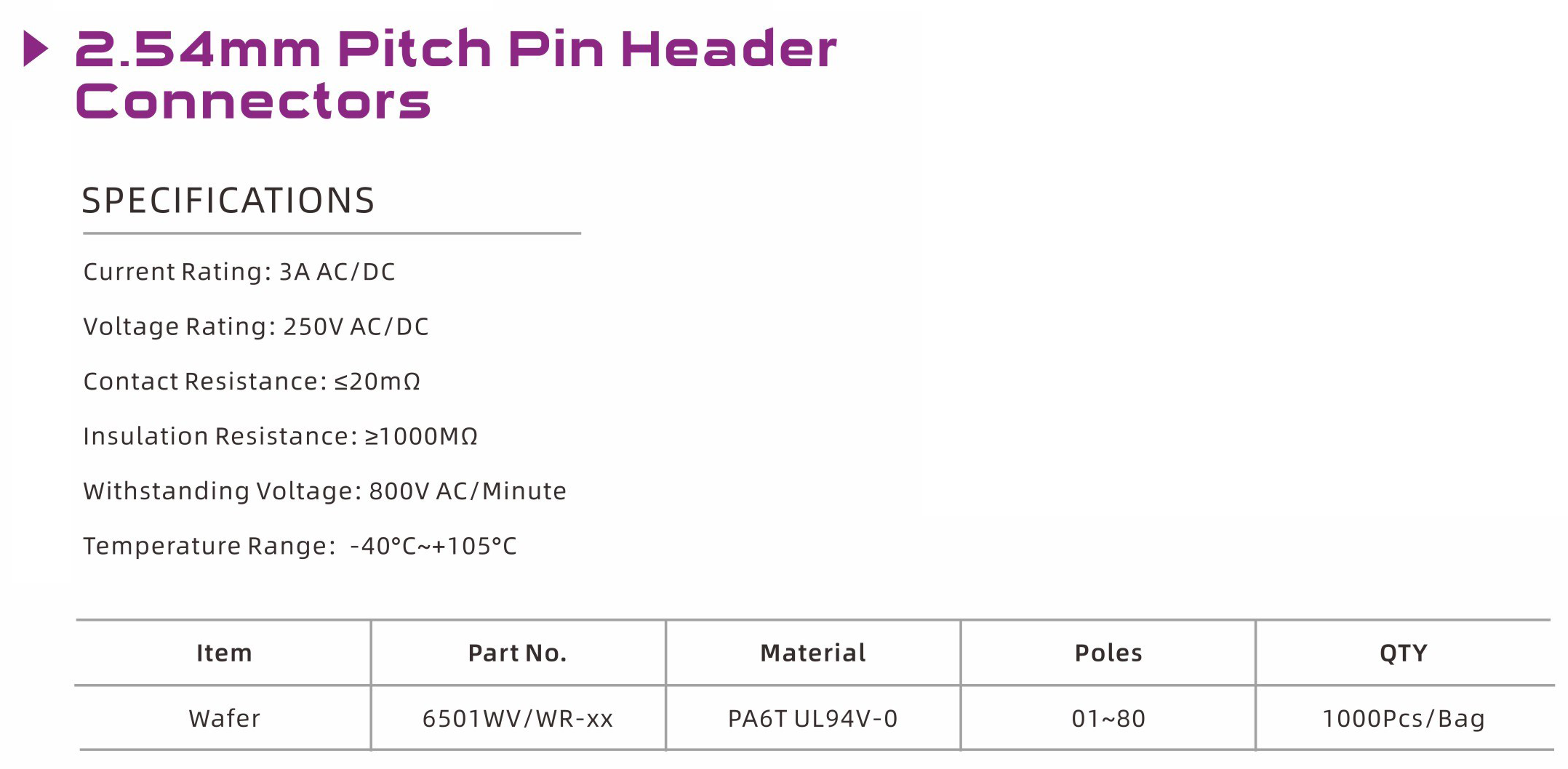 6501W Series 2.54mm Pitch (.100") 排針排母牛角連接器