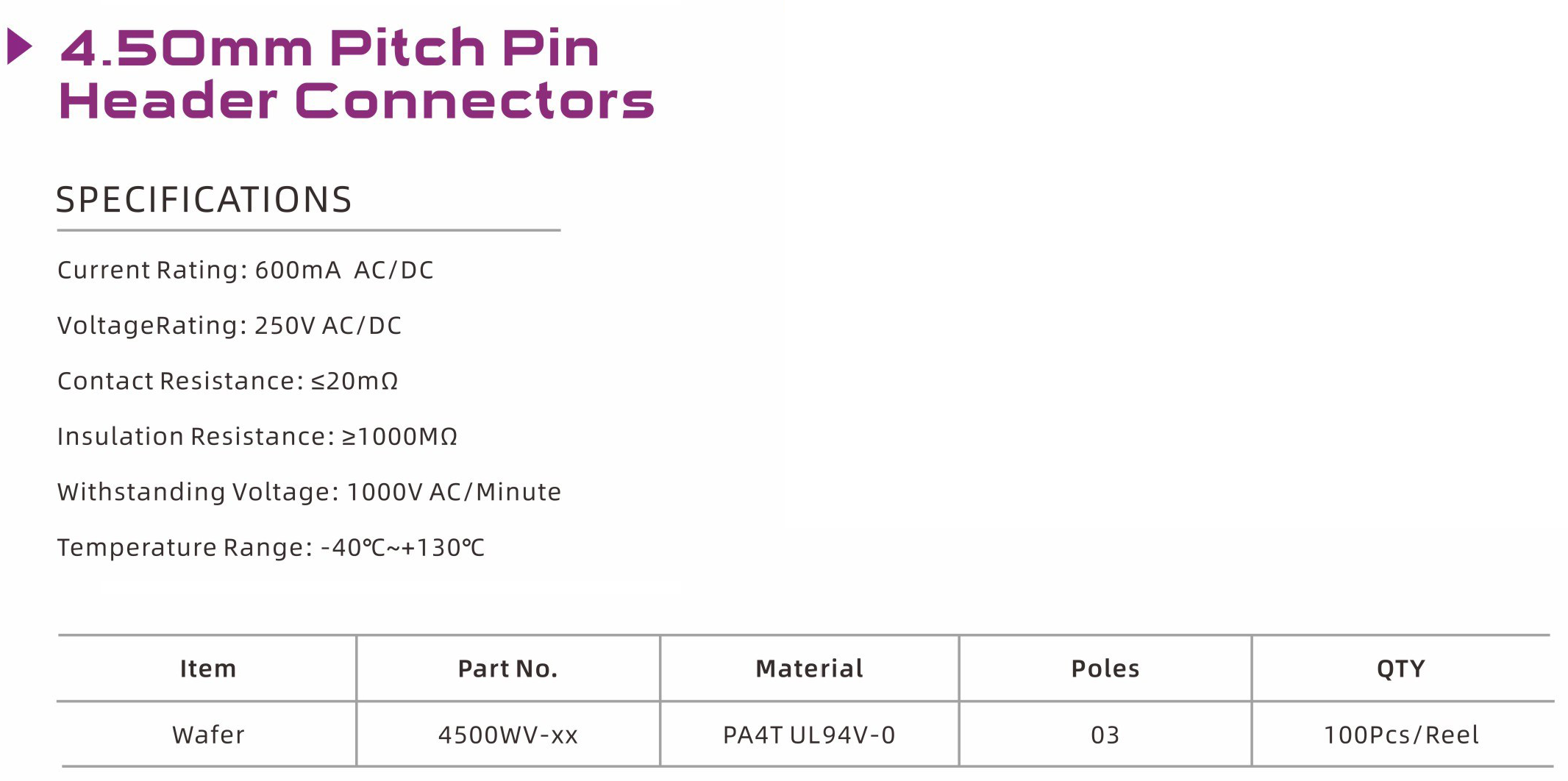 4500 Series 4.50mm Pitch (.177") 排針排母牛角連接器