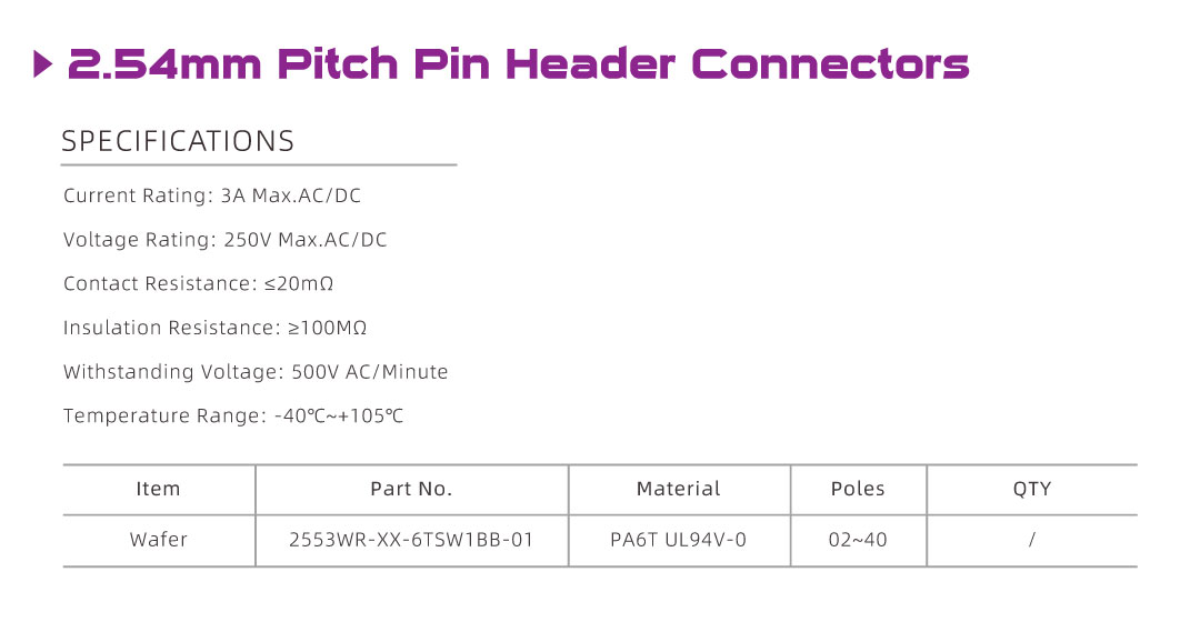 2553WR Series 2.54mm Pitch (.100") 排針連接器