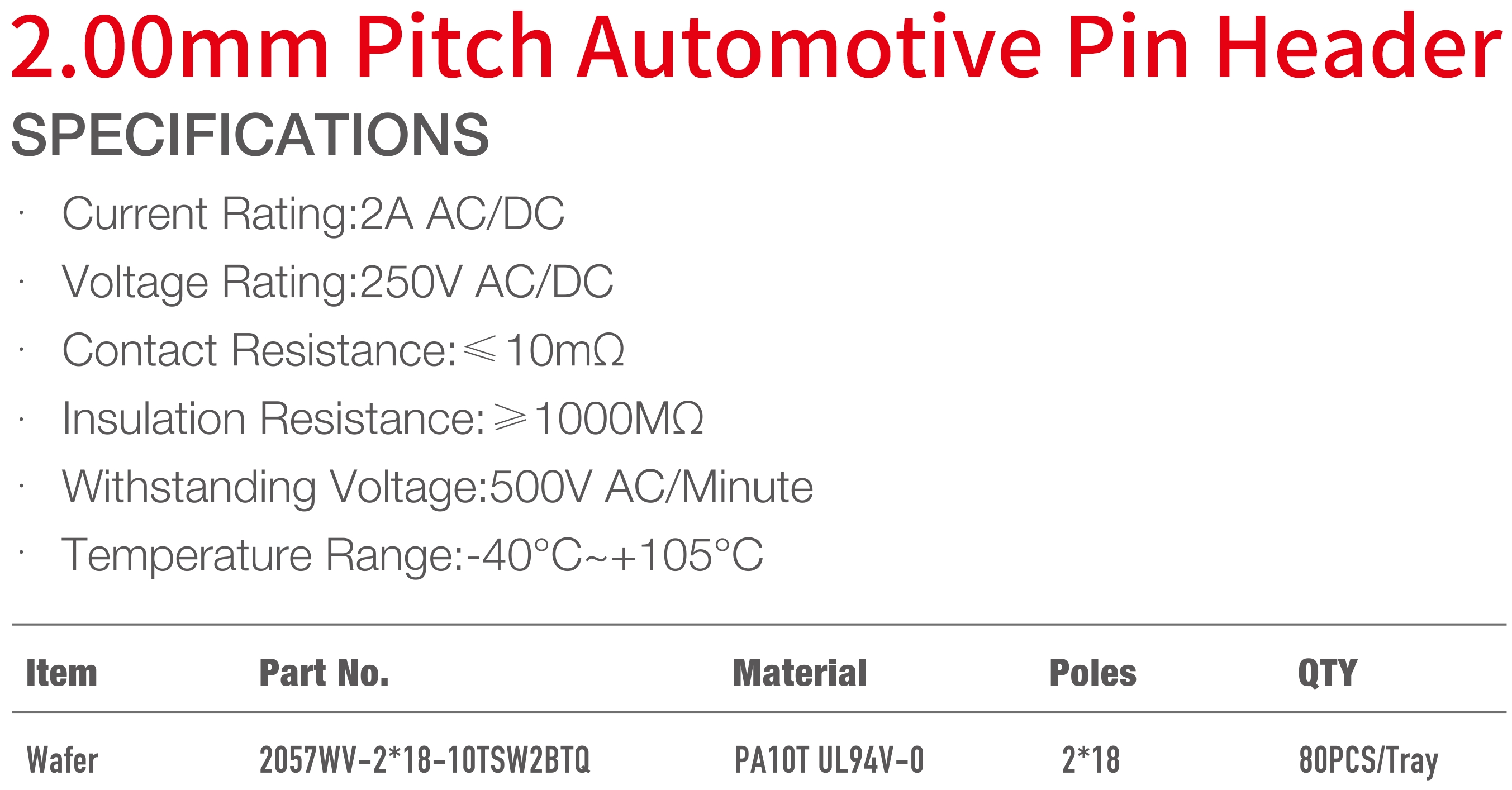 2057 Series 2.00mm Pitch (.079")車用排針連接器