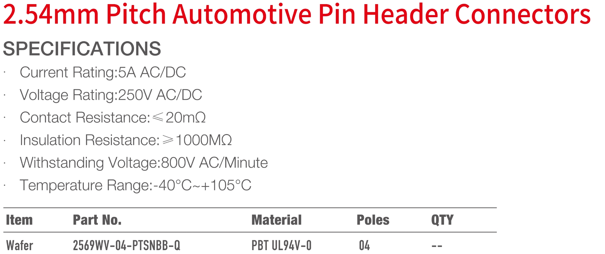 2569 Series 2.54mm Pitch (.100") 車(chē)用排針連接器