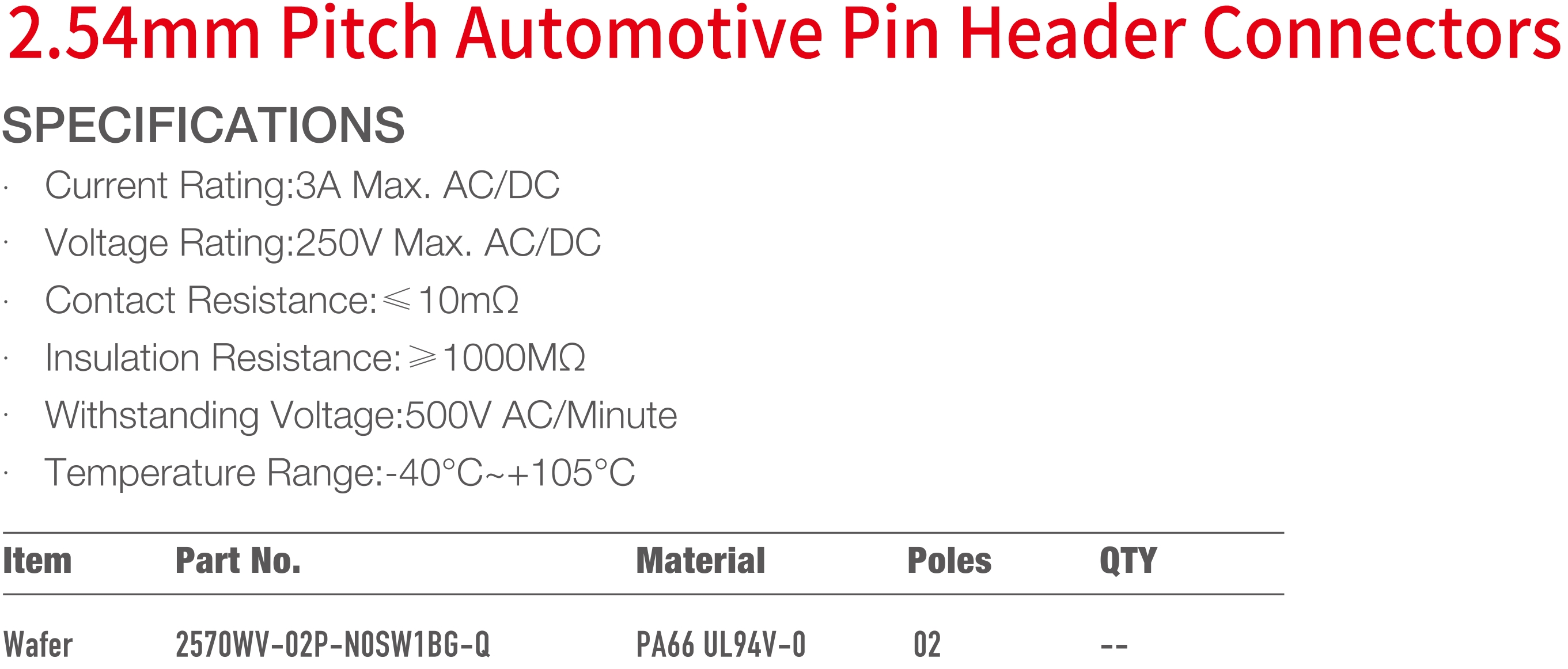 2570 Series 2.50mm Pitch (.100") 車用排針連接器