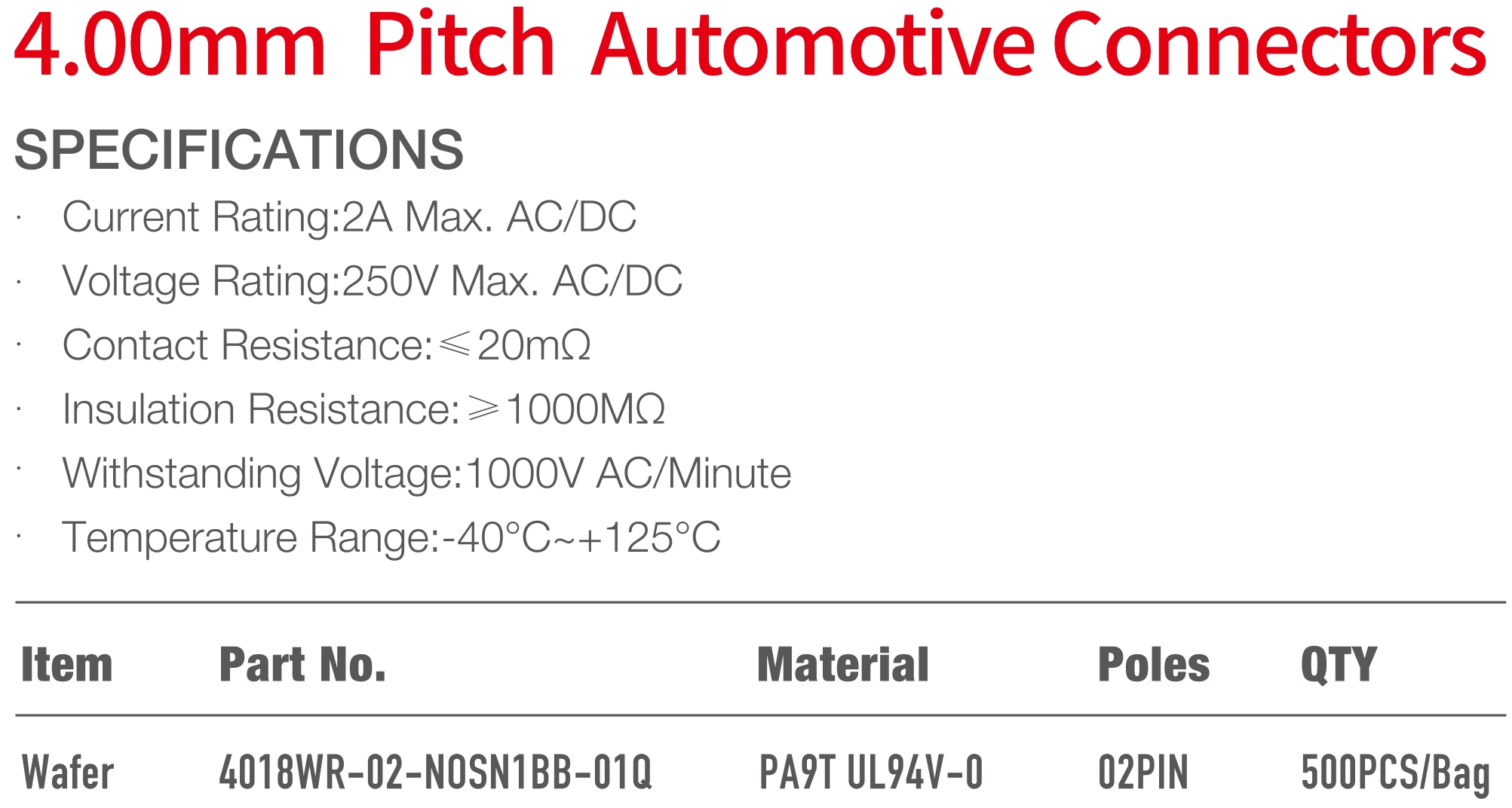 4018 Series 4.00mm Pitch (.157") 車用排針連接器