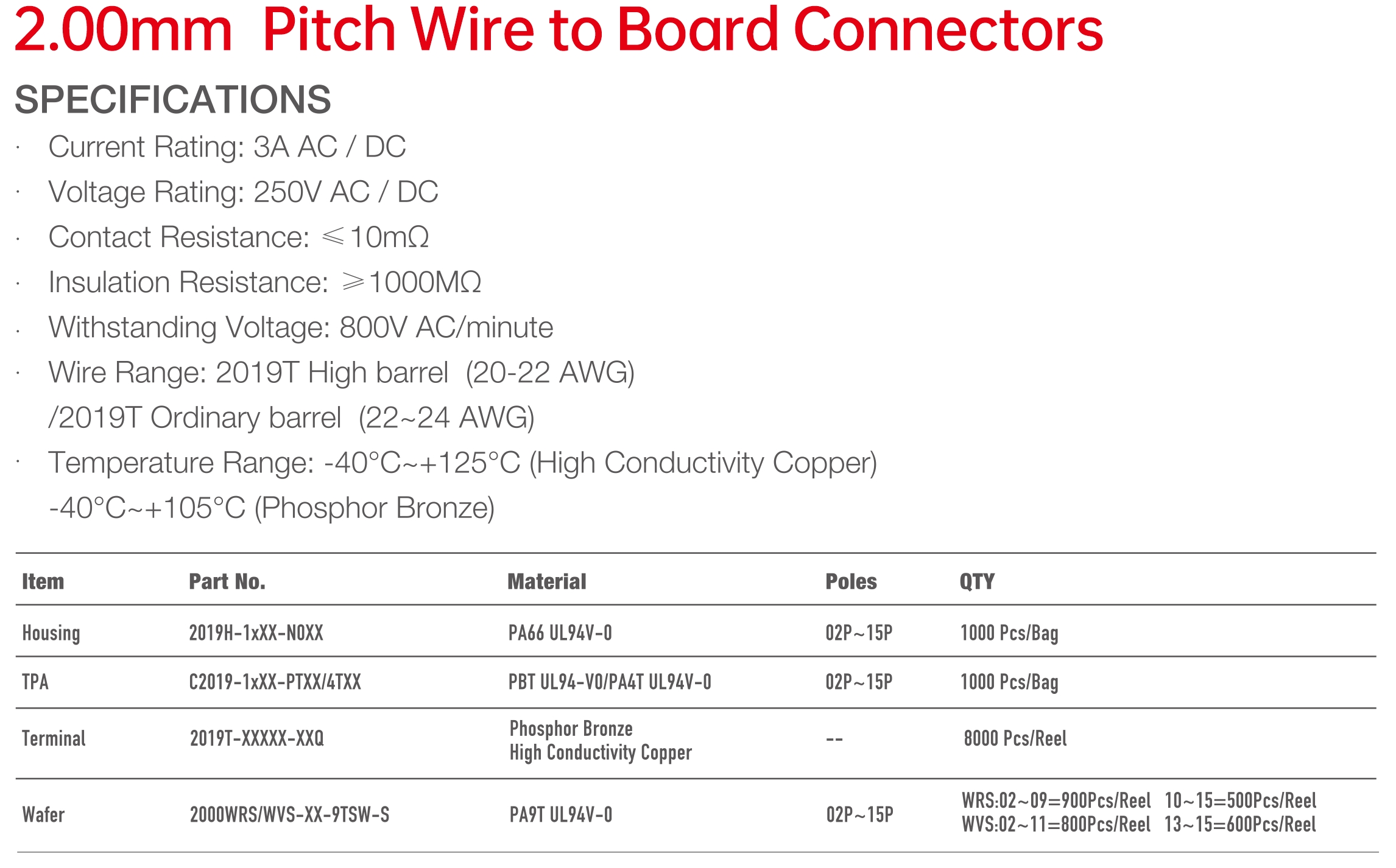 2019 Series 2.00mm Pitch (.079") 車(chē)用二次鎖扣連接器
