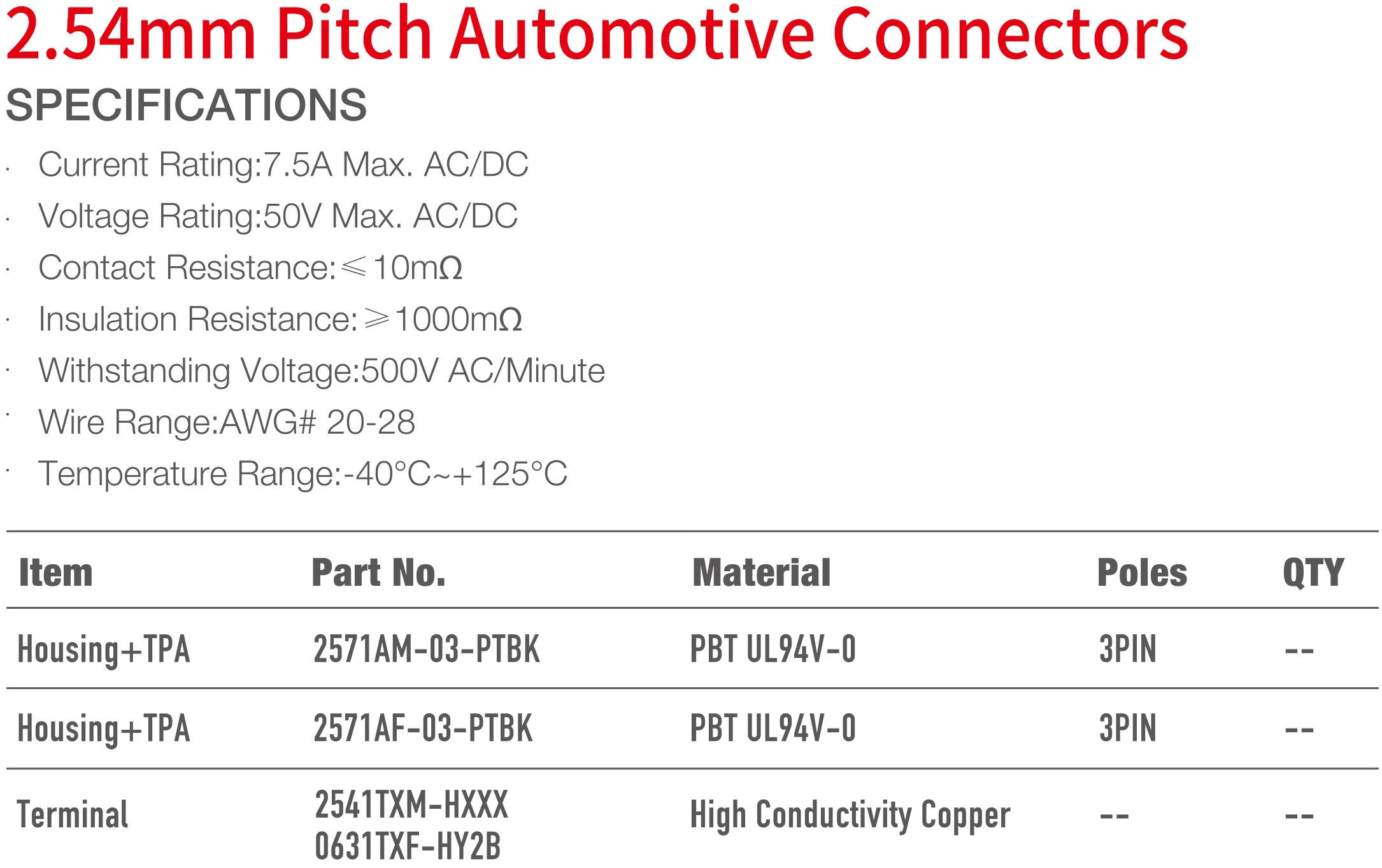 2571 Series 2.54mm Pitch (.100") 車用二次連接器