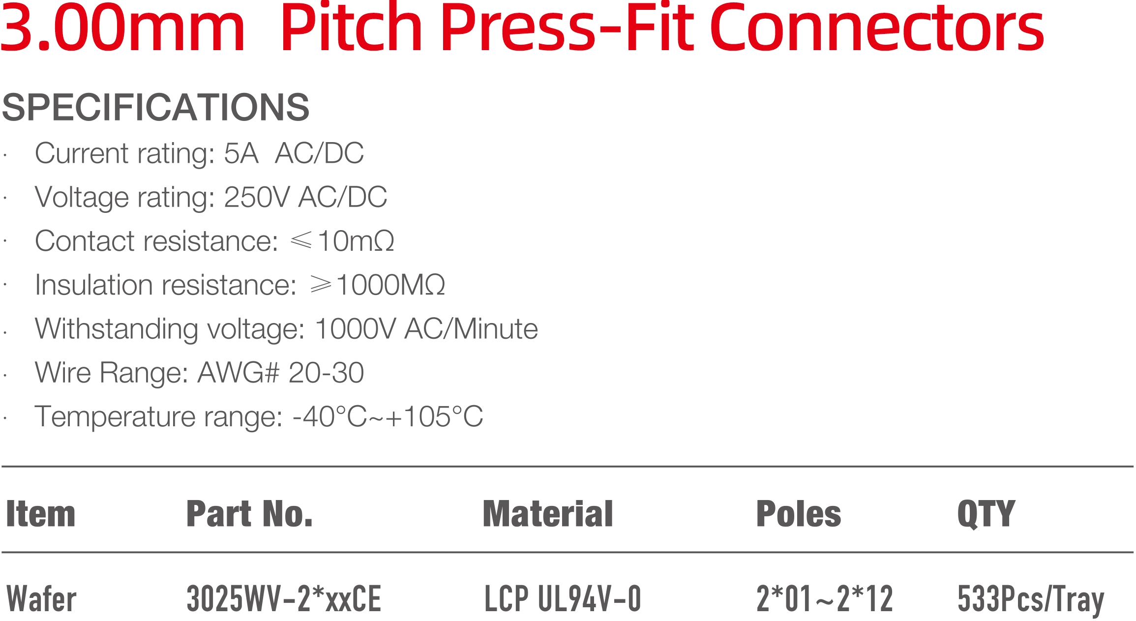 3025CE Series 3.00mm Pitch (.118") 線對板連接器