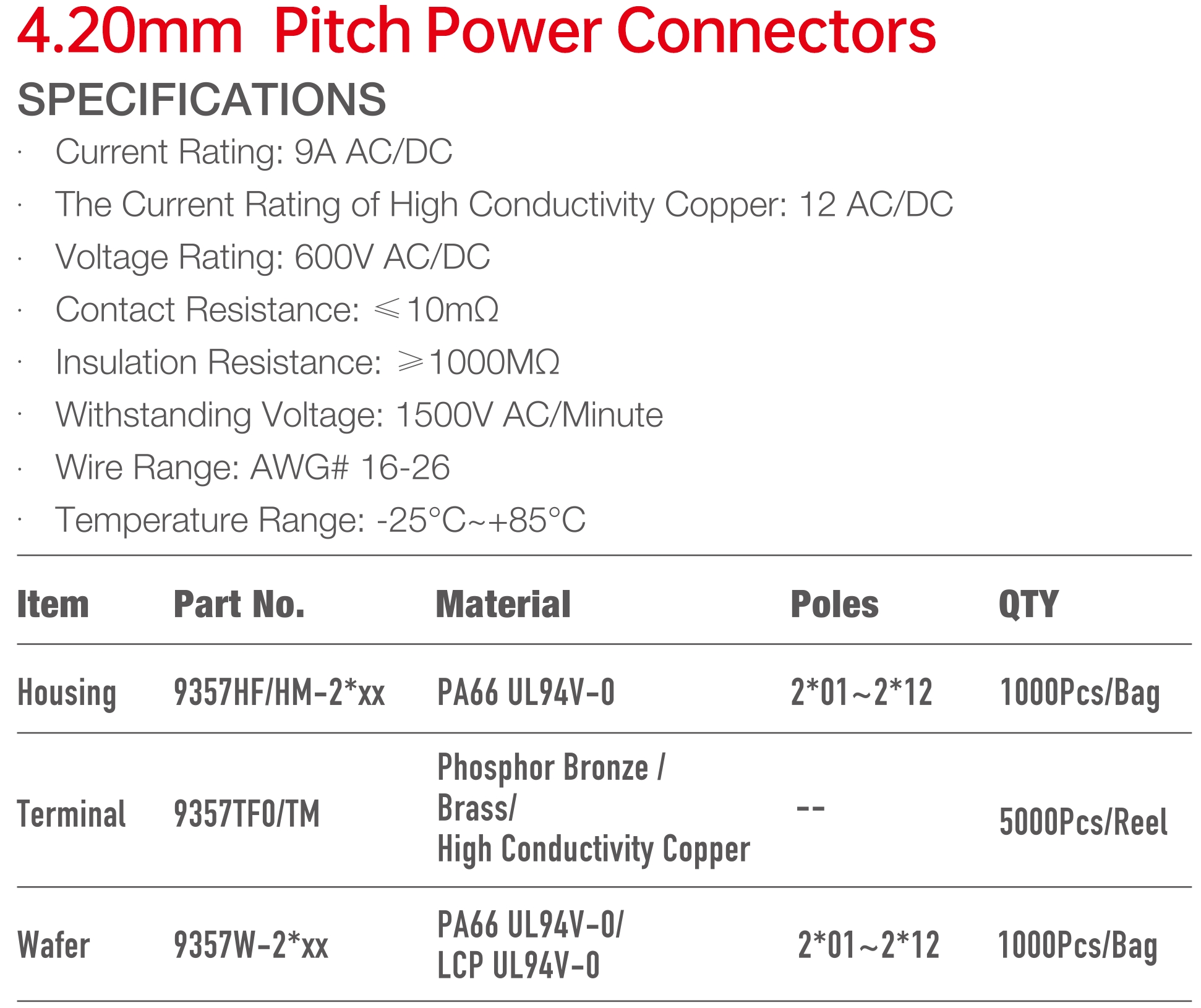 9357 Double Row Series 4.20mm Pitch (.165") 線對線連接器