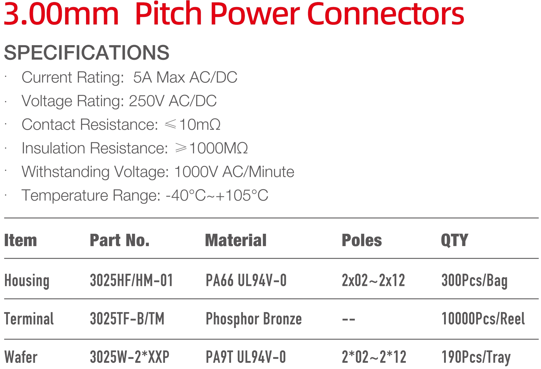 3025 Series 3.00mm Pitch (.118") 電源連接器