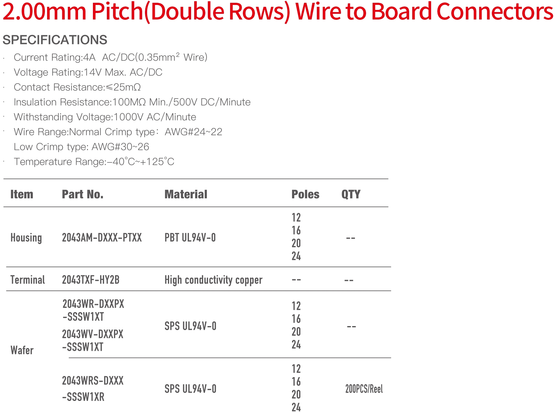 2043 (Double Rows) Series 2.00mm Pitch (.079") 線對(duì)板連接器