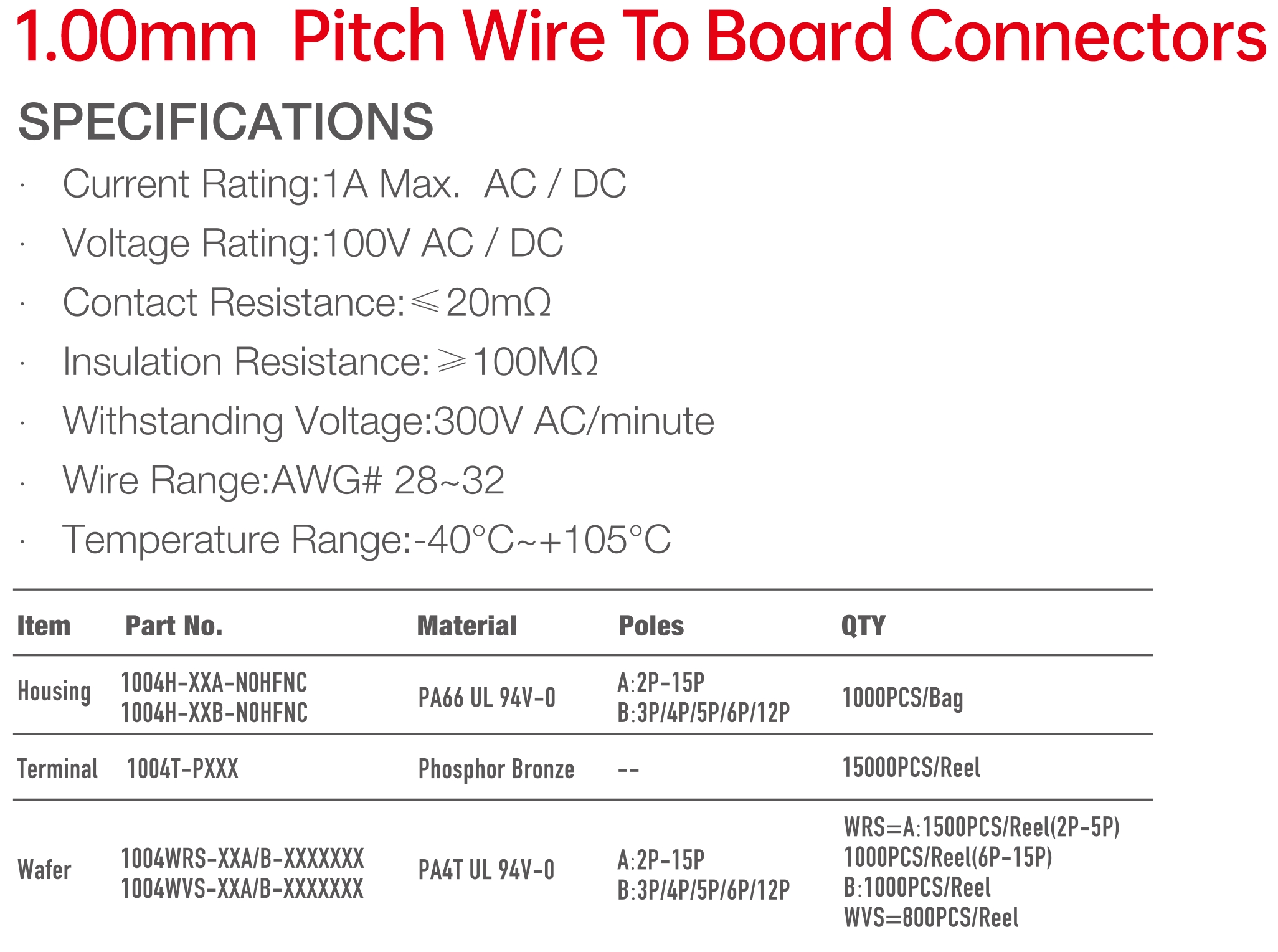 1004 Series 1.00mm Pitch (.039") 線對板連接器