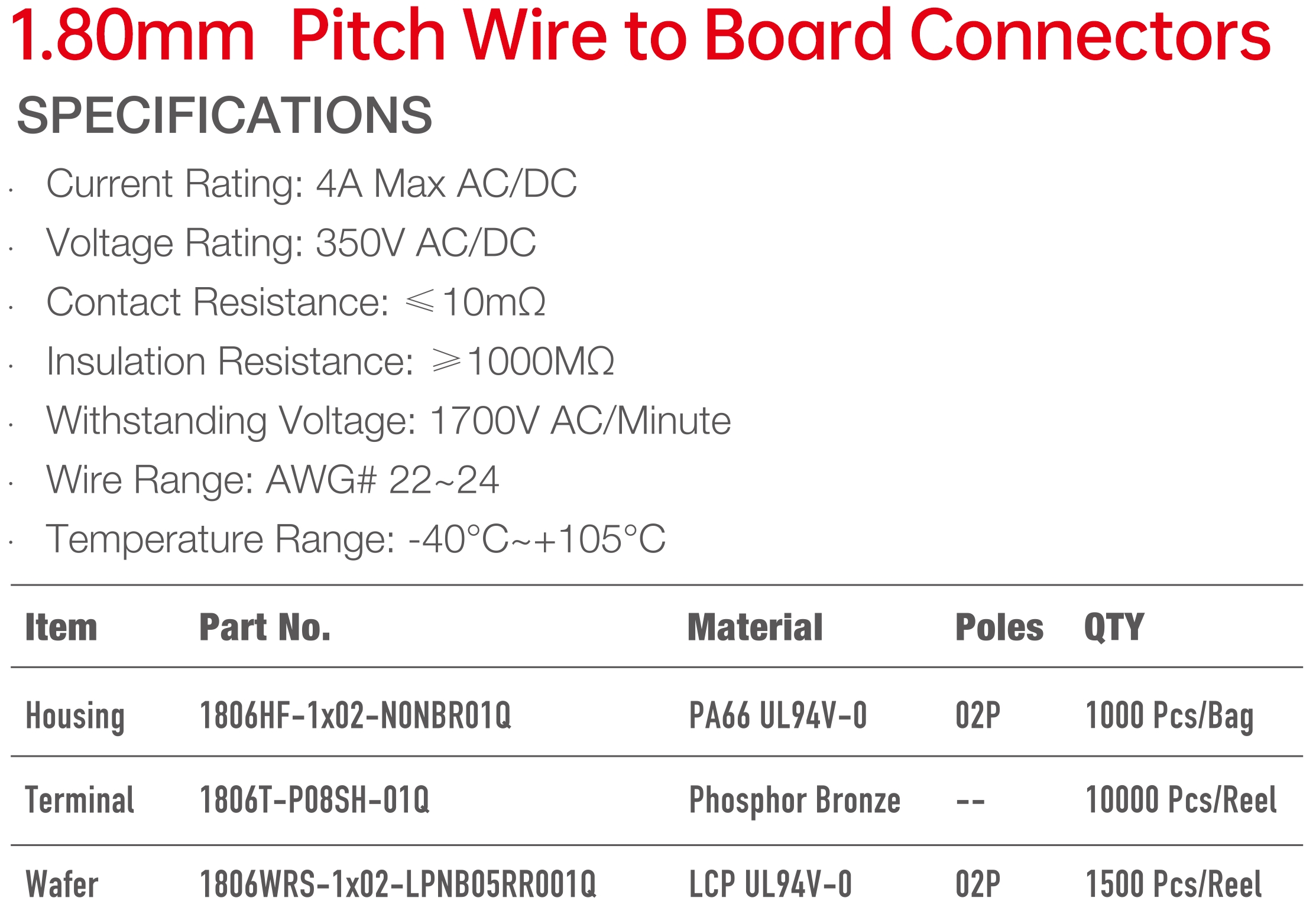 1806 Series 1.80mm Pitch (.071") 線對(duì)板連接器
