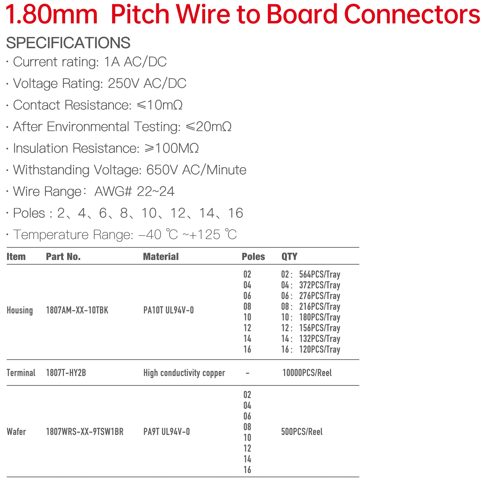 1807 Series 1.80mm Pitch (.071") 線對(duì)板連接器