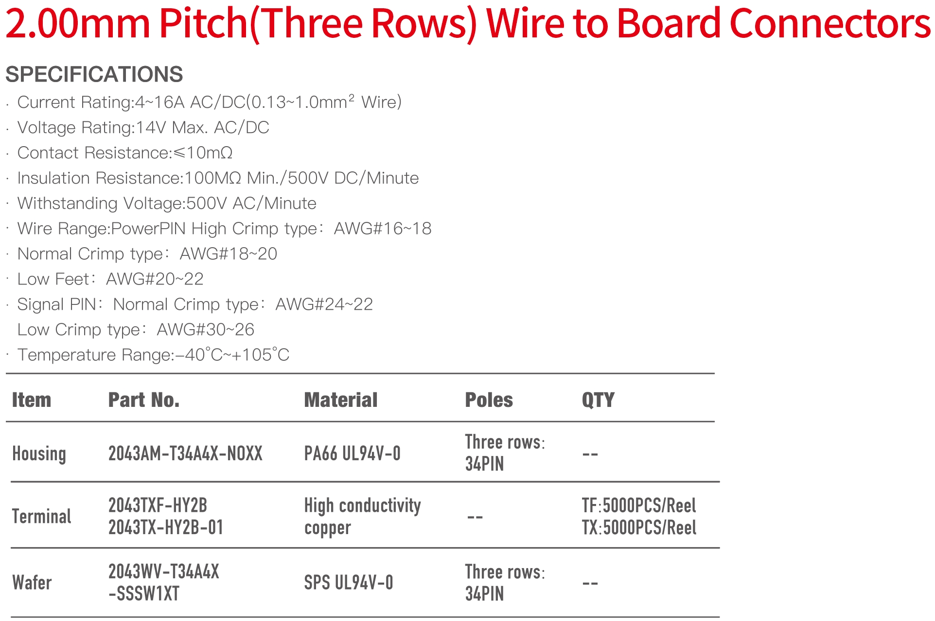 2043 Three Rows Three Rows Series 2.00mm Pitch (.079") 線對板連接器