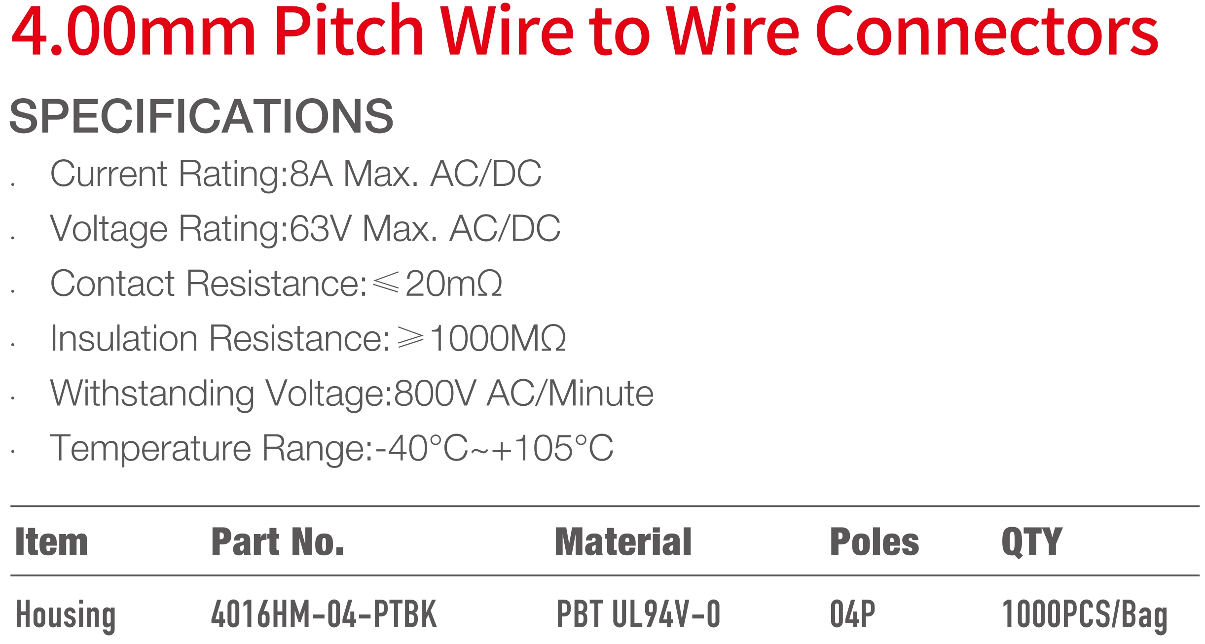 4016 Series 4.00mm Pitch (.157") 線對線連接器