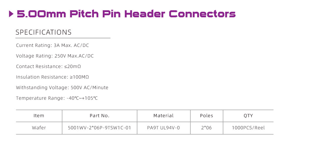 5001 Series 5.00mm Pitch (.197") Pin Header Connectors