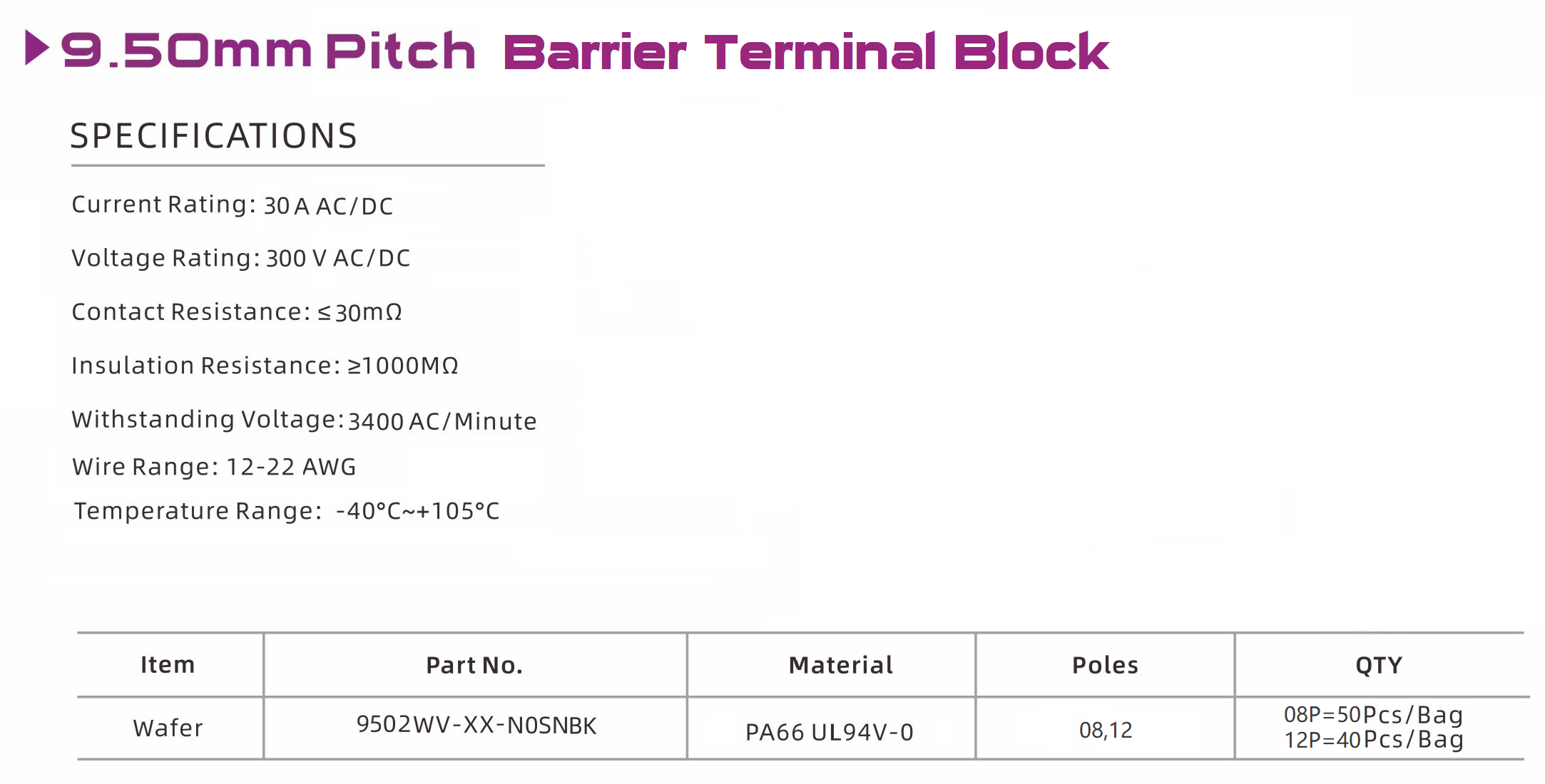 9502 Series 9.50mm Pitch (.374") Pitch Barrier Terminal Block