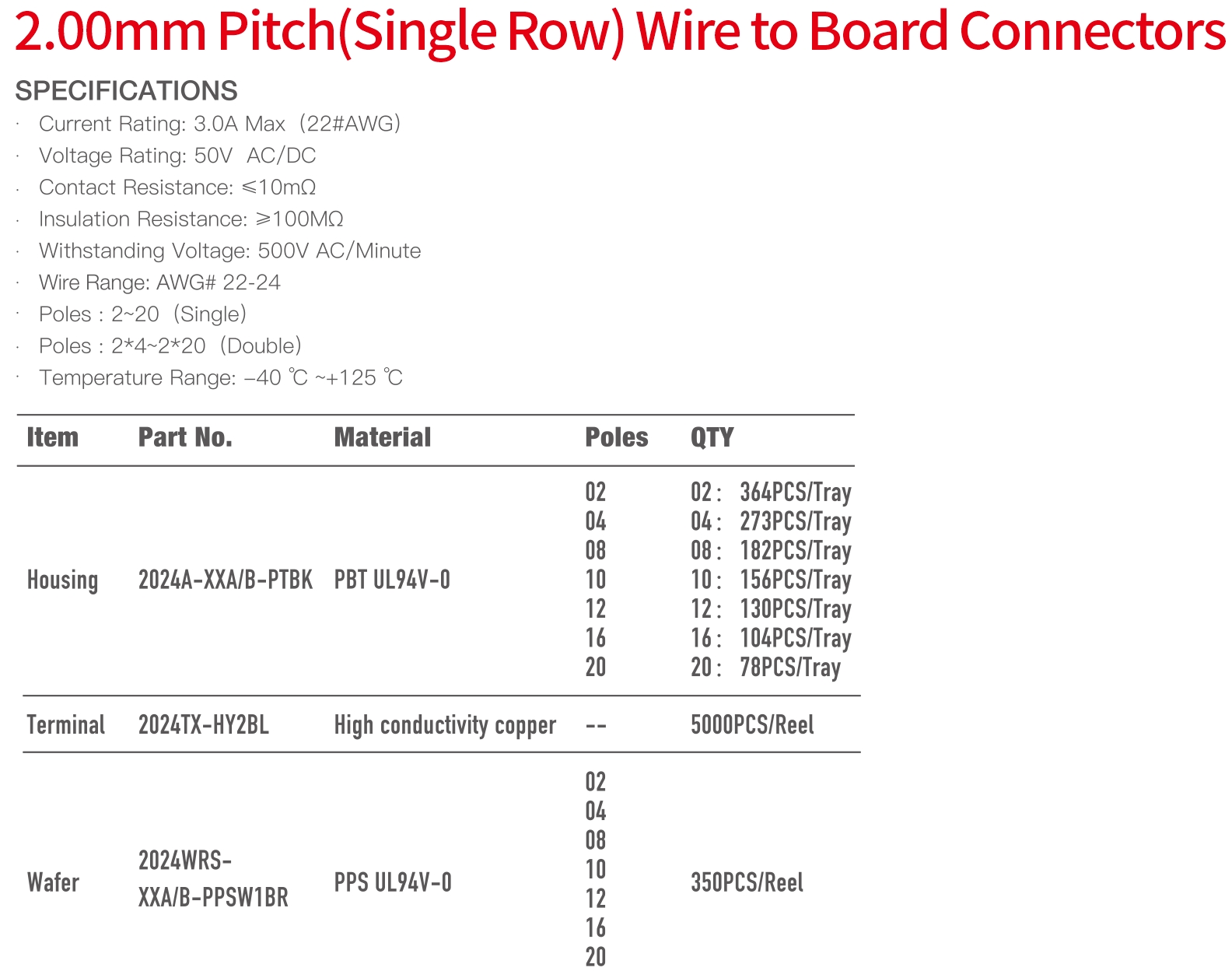 2024A Single Row Series 2.00mm Pitch (.079") 線對(duì)板連接器